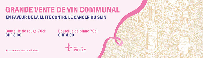 À l'occasion d'Octobre rose, la Ville de Prilly est heureuse d’annoncer l’organisation d’une grande vente de vin communal en faveur de la lutte contre le cancer du sein. À travers cette initiative solidaire, la Municipalité souhaite mobiliser la population autour d’une cause qui touche de nombreuses…