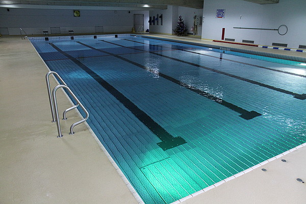 D'une longueur de 25 mètres sur 11 mètres et d'une profondeur de 2 mètres, son bassin de 4 lignes est doté d'un plancher mobile sur la moitié de sa surface, permettant de limiter la profondeur de 40 cm jusqu'à 2 mètres.
